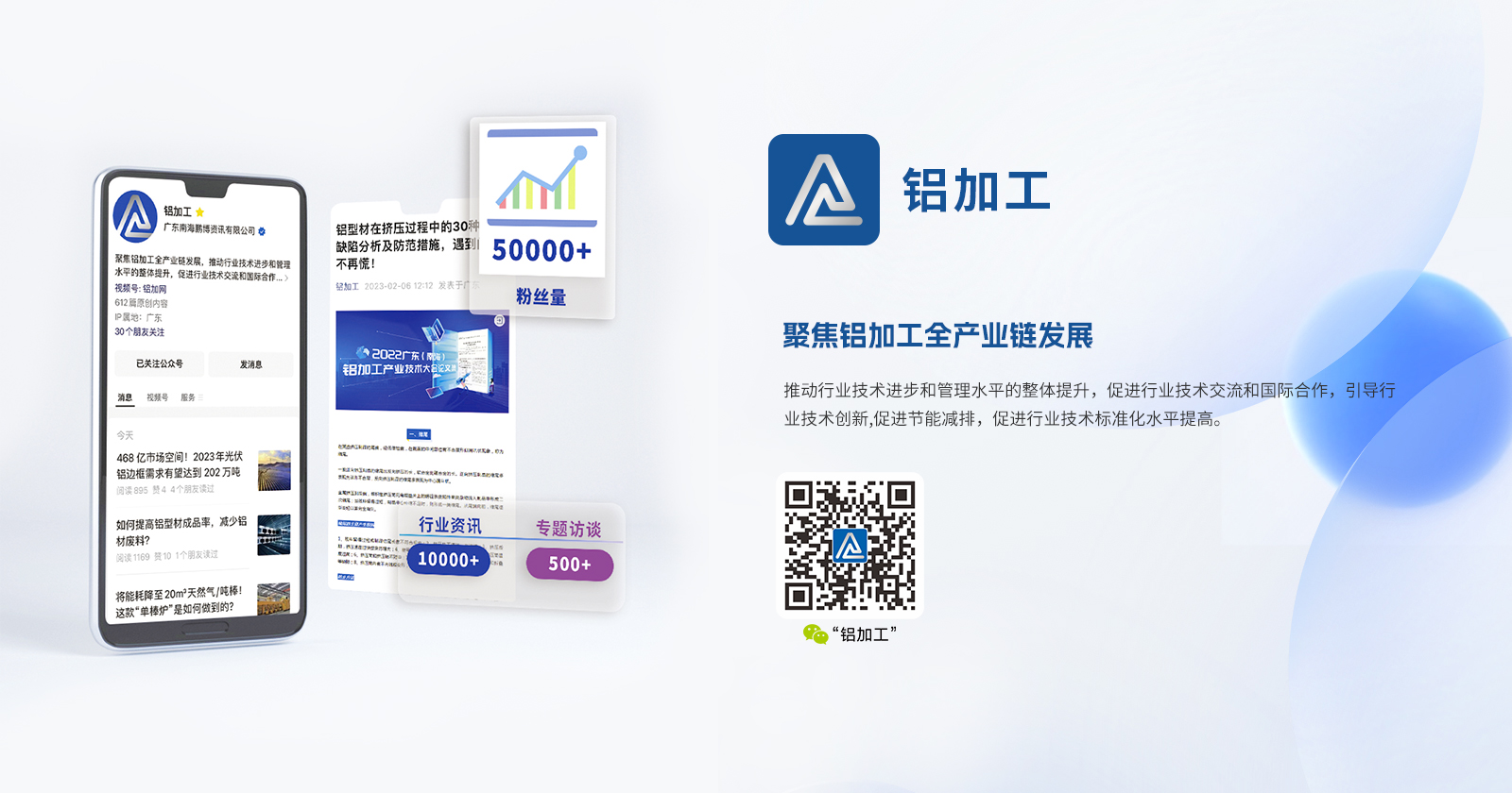 鋁加網(wǎng)(www.albiz.cn)是聞名鋁加工行業(yè)的垂直門戶網(wǎng)站,云聚鋁業(yè)新生態(tài),構(gòu)建鋁業(yè)新場景,以albiz.cn 網(wǎng)站為核心,以移動云端、鋁加工微信、鋁加網(wǎng)視頻號、《鋁型材專刊》和《鋁世界》雜志為載體,成為了鋁加工行業(yè)資訊和精準(zhǔn)傳播的首選傳媒。鋁加網(wǎng),采集和發(fā)布全行業(yè)信息資訊,提供線上展覽、在線直播、短視頻、品牌策劃、品牌運營、品牌傳播等全方位的專業(yè)服務(wù)。